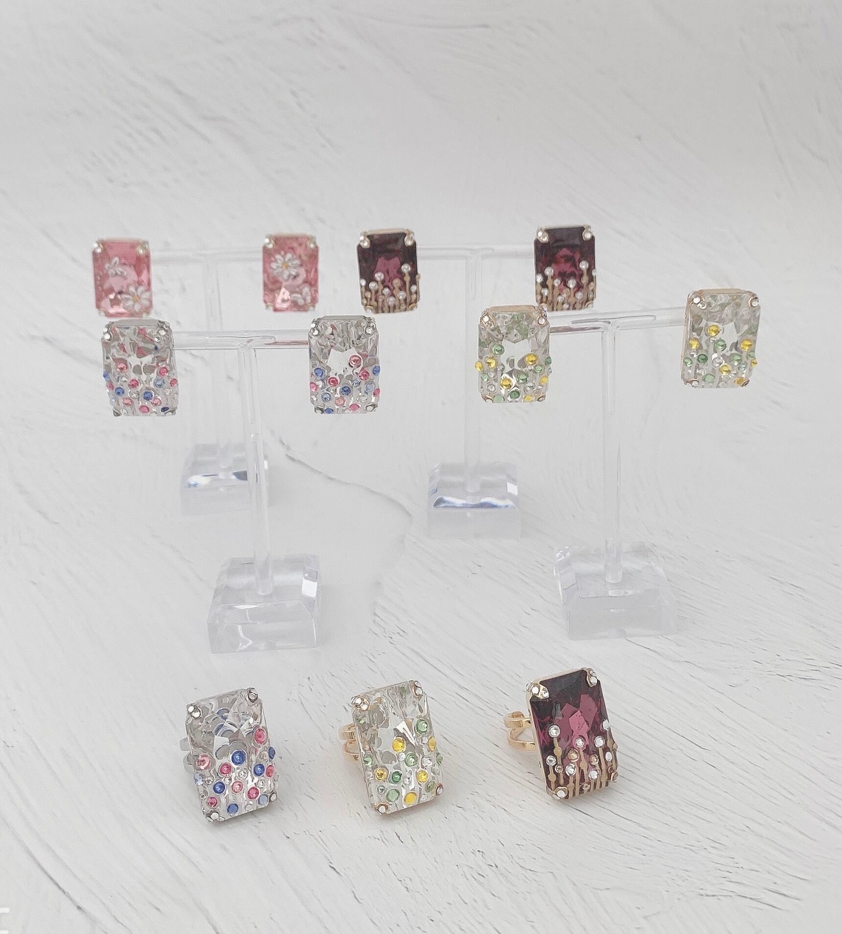 Bigクリスタルピアス/ピンク&ブルー sold out/追加注文可能