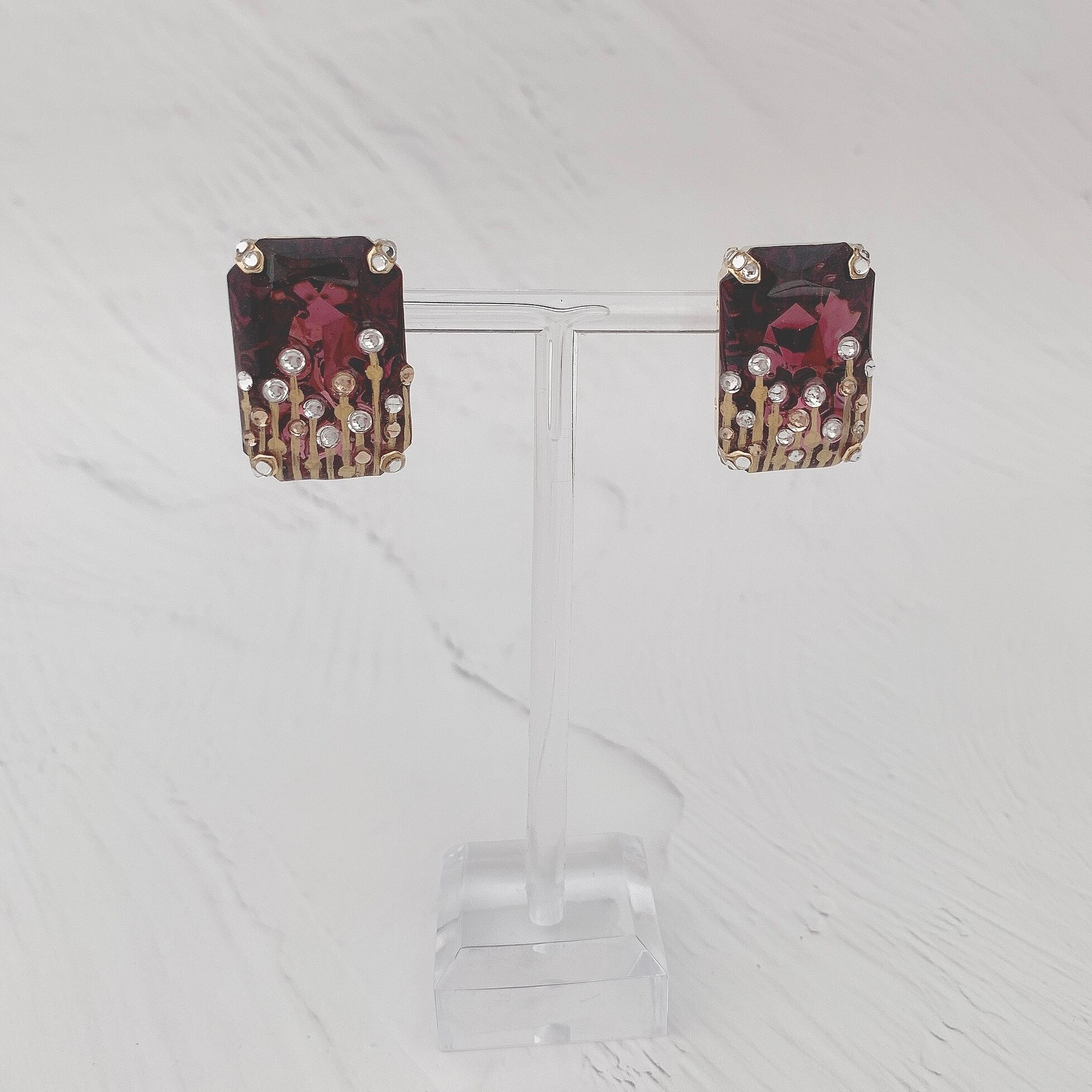 存在感のある大きなアメジスト色のクリスタルにリズミカルに小さなクリスタルを散りばめて、ゴールドの手描きラインもプラス!!